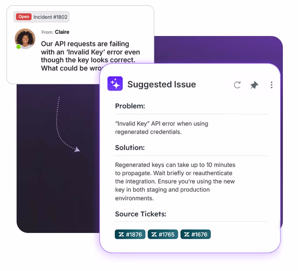 When new solved tickets arrive, the AI updates the existing Solution — keeping knowledge fresh, accurate, and aligned with how your team solves problems today.