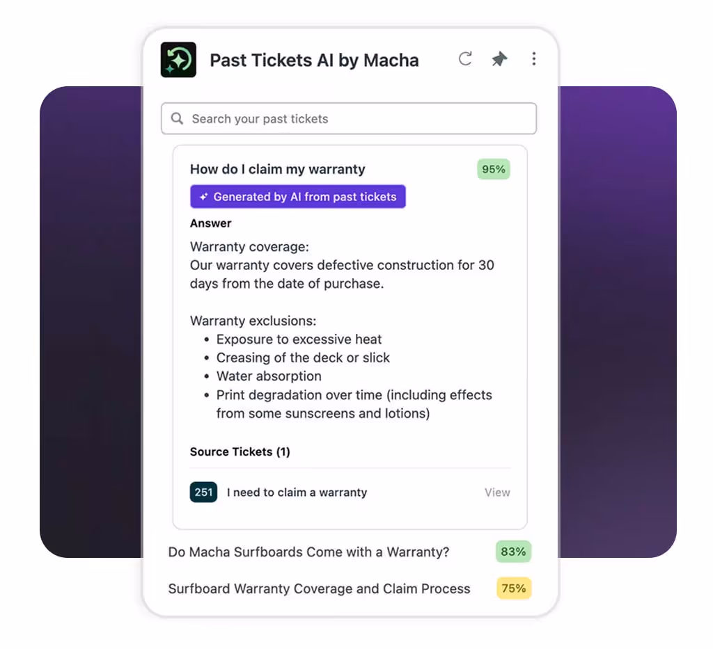 Past Tickets AI identifies similar tickets and groups them into a single consolidated AI Solution.