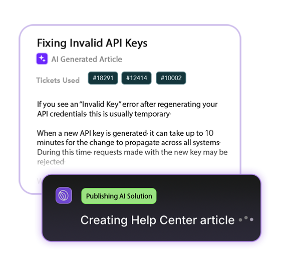 Build your Knowledge Base from real support tickets. Transform solved Zendesk tickets into structured knowledge blocks, identify knowledge gaps, and publish what customers actually need.
