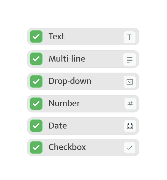 Natively supports dropdowns, text, date, checkbox, and number fields — so your most important data points are always captured accurately.